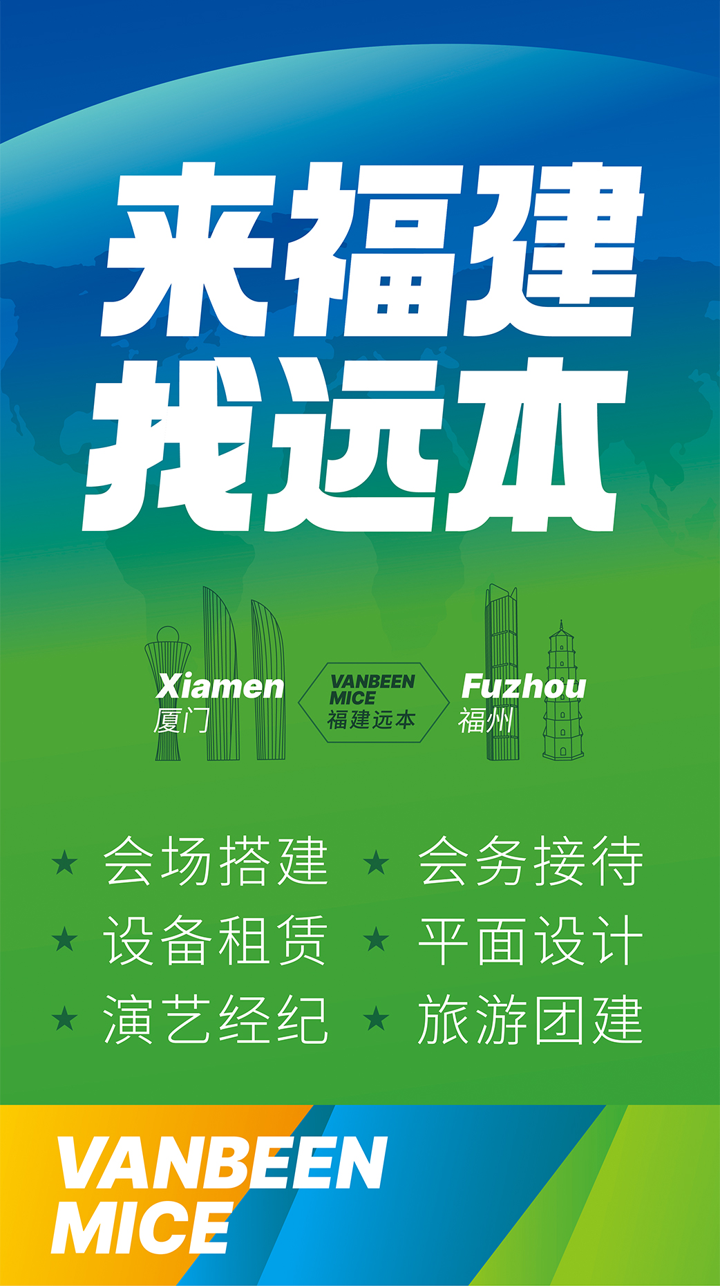 廈門遠本成立于2013年,是一家集策劃設計、落地搭建以及會議接待等全案服務的DMC公司。公司擁有LED屏幕、燈光音響、木作工廠等專業舞美設備,擁有一批專業穩定的策劃設計和會務接待團隊,能夠快速、精準地為客戶提供優質的策劃、設計、搭建、接待等服務。公司已服務過華為、阿里、麥當勞、中國移動、??松梨?、興業銀行、招商銀行、華潤三九、齊魯制藥、萬邦制藥等國內外知名企業,并成功入選中國國旅、中旅、康輝國旅、錦江國旅、中智商展、墨馬傳媒等國內知名PCO公司供應商庫。